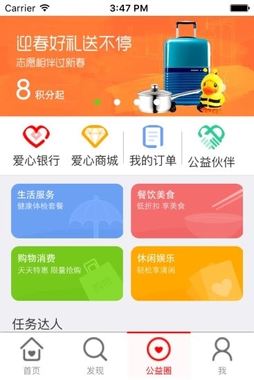 这里免费为您提供各类公益活动,您可以在线上与其他公益伙伴互助协作,获取所需帮助。