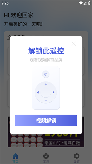 点击空调后会弹出相应界面,观看广告就能启动连接流程。由于这是一款免费应用,因此会有广告弹出。