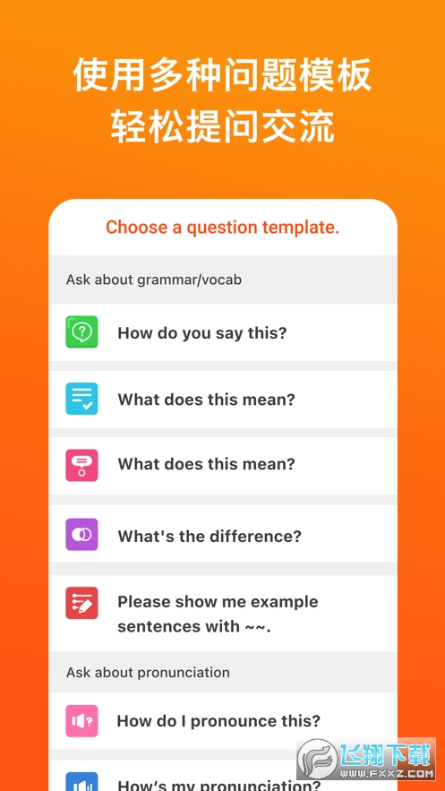 提问模板让提问更轻松——你只需填入想询问的单词、句子或段落,剩下的交给HiNative就好。它能自动把问题翻译成其他用户的母语,帮你在毫无基础的情况下,迈出语言学习的第一步!