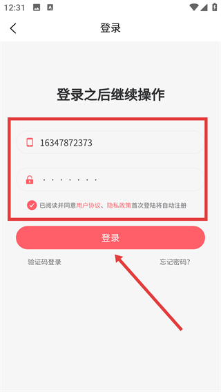 4、在密码登录界面的表单里输入手机号和密码,勾选相关协议后点击【登录】按钮,即可完成账号登录流程。