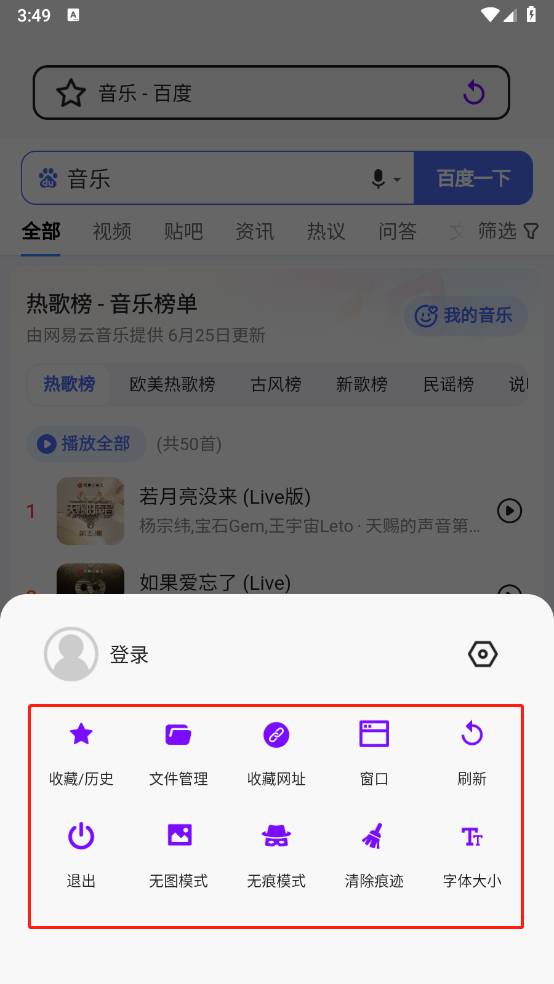 4、点击右下方的三个横杠标志,可以对网页进行收藏、转发等操作。