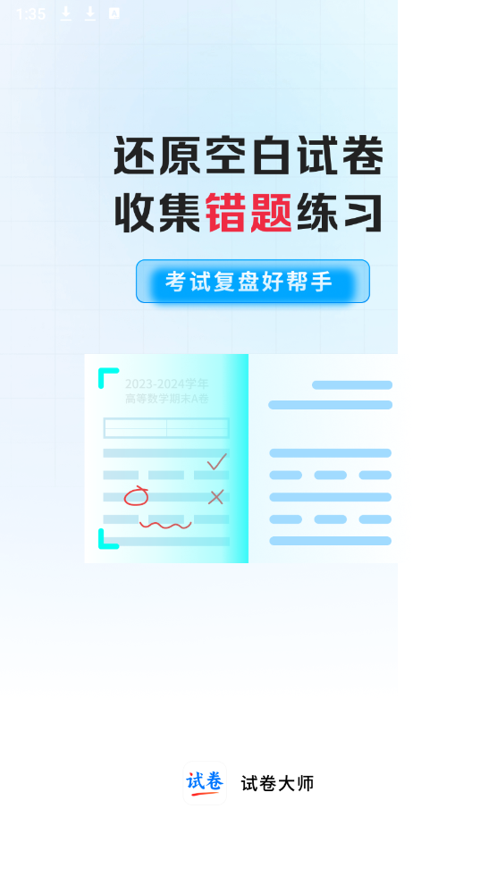 试卷大师软件,很不错的手机扫描批改软件,还可以将试卷进行还原,拍错题笔记都可以的,特别适用于教师行业,无论是批改试卷还是作业都是可以的,提高效率,批改试卷精准,但只适用于客观题型,减少教师的工作量,是办公好助手。