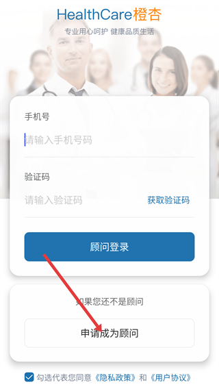 2、当页面显示“顾问登录”时,点击【申请成为顾问】按钮,即可进入顾问身份的申请表单页面。