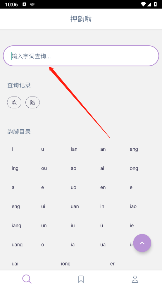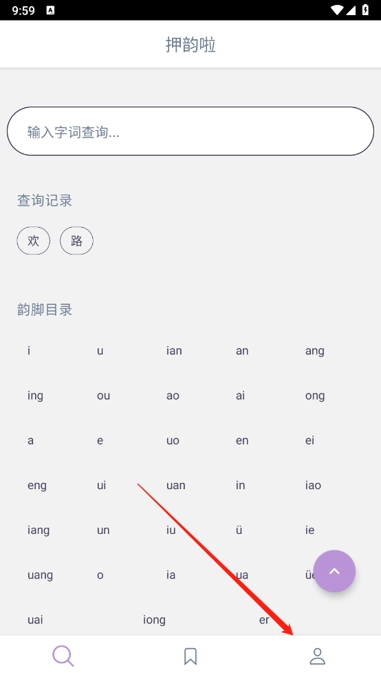 1、进入押韵啦,可通过韵脚或是字词进行查询。