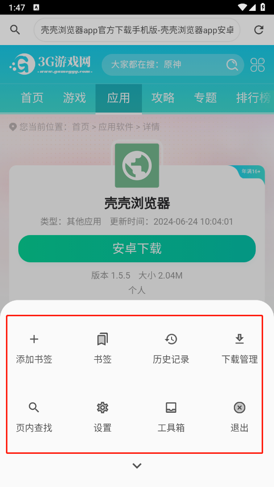 1、支持链接复制功能,同时还具备页面内搜索、添加至主屏幕以及阅读模式等功能。