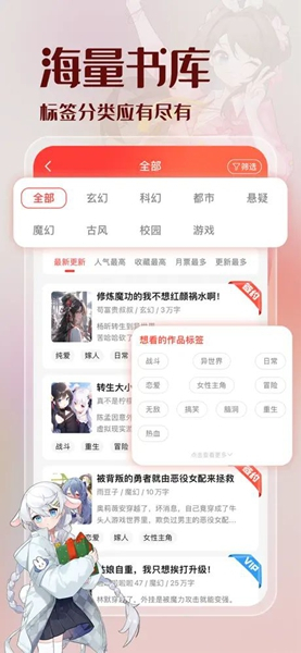 3、您可以选择不同的标签样式和类别,在阅读过程中免费阅读许多热门作品。