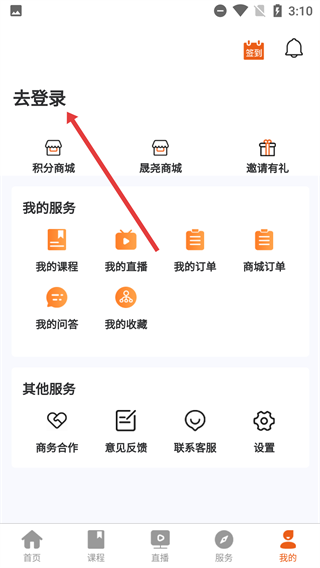 2、在“我的”页面,点击【去登录】选项,进入账号登录界面。