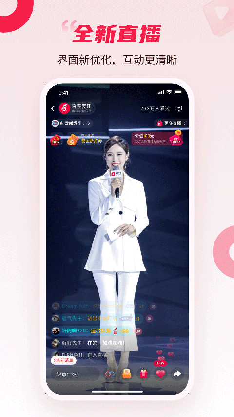 2、软件还有专门的【直播】页面,这里不仅显示了各大直播间,同时上方还会显示直播预告。