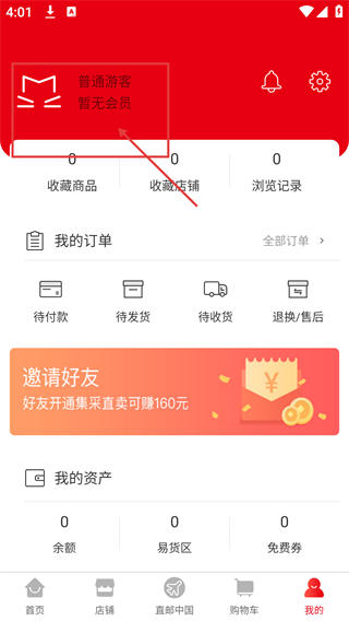 2、进入【我的】页面,点击【普通游客-暂无会员】区域,可进入登录界面,准备完成账号登录操作。