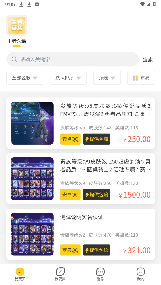 2、进入首页后,点击“我要买”选项,这里提供了丰富多样的游戏账号类型,您还可以通过关键词来进行搜索查找。