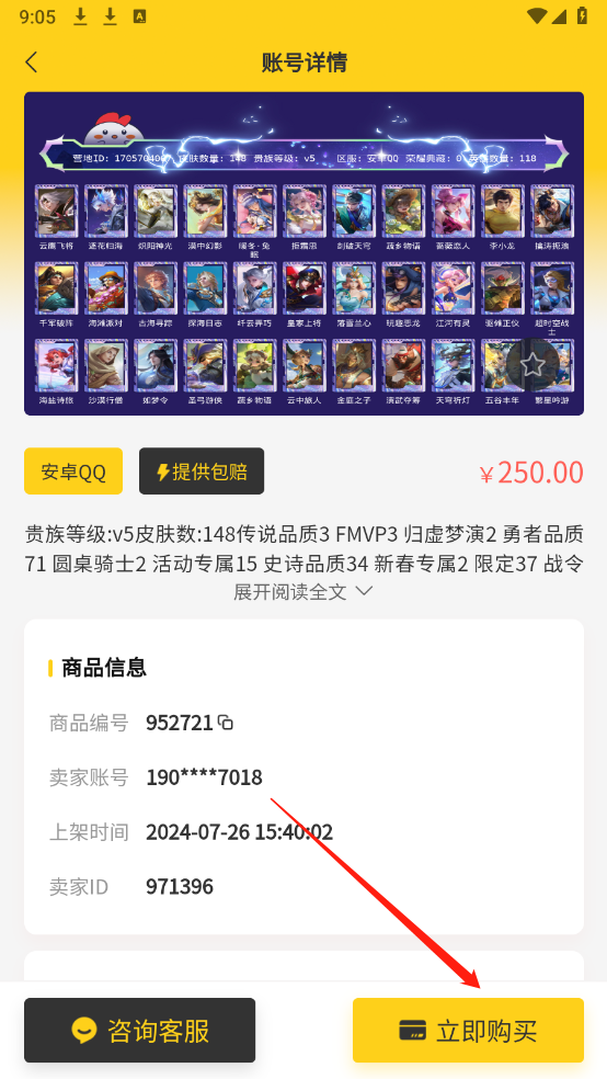 3、挑选好所需账号后点击进入,再点击“立即购买”按钮就可以了。