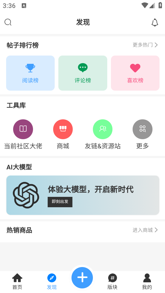 进入首页后,能看到众多资源板块,涵盖帖子、工具库和软件资源等内容。