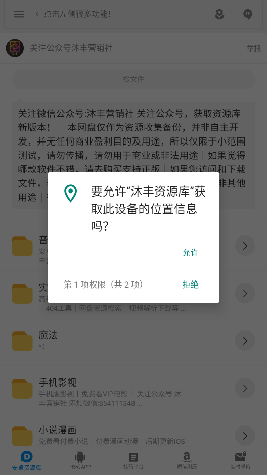 1、安装沐丰资源库,获取相关权限。