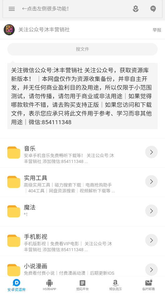2、打开软件后,能看到丰富的资源分类,涵盖了音乐、实用工具、影视、小说、漫画等多种类型。