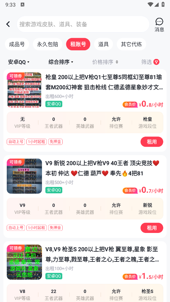 3、操作便捷:用户界面设计简洁直观,新用户能快速熟悉操作,轻松完成账号租赁流程。