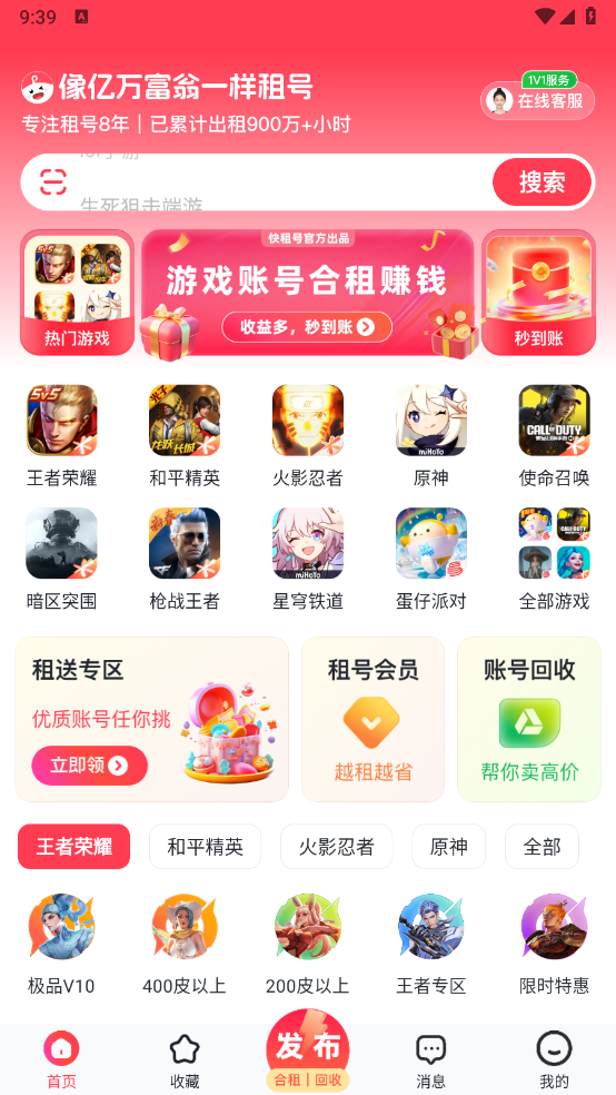 快租号是个特别靠谱的游戏账号交易平台,这里汇聚了各类热门游戏的账号交易资源,像王者荣耀、蛋仔派对、星穹铁道这些都能找到。平台上所有账号都是正版的,而且得经过严格审核才能发布,用户自己要是有优质账号也可以在这里发布哦。