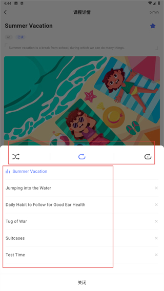 2、在分级页面选择目标课程(如【SummerVacation】),点击进入该课程的详情学习界面。