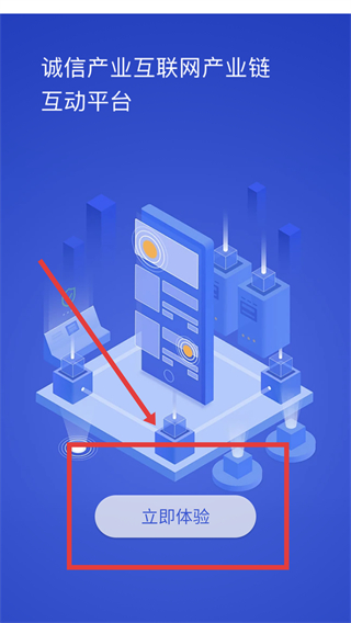 1、在平台启动页点击【立即体验】按钮,即可进入应用的服务协议确认环节。