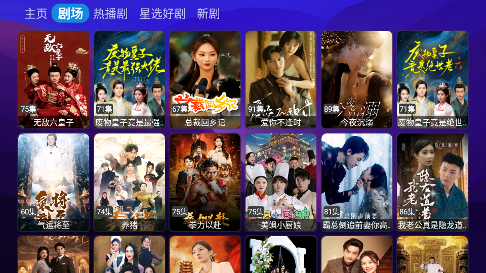 2、进入首页,可以看到很多剧场、热播剧以及新剧等。