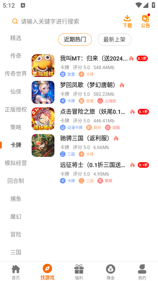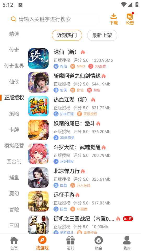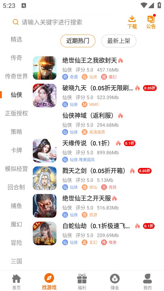 2、来到首页以及找游戏板块,为玩家提供了丰富的游戏资源盒子,无论是仙侠、传奇还是策略等都有。
