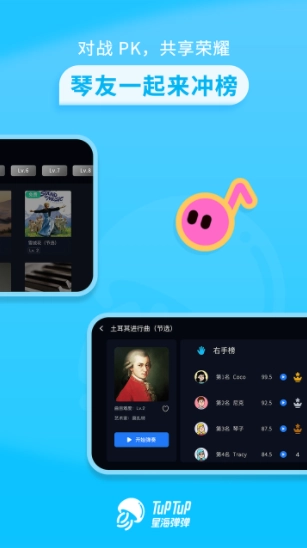 5. 趣味PK模式:软件设有趣味PK模式,学生可以与好友进行钢琴竞技,争夺高分荣耀。