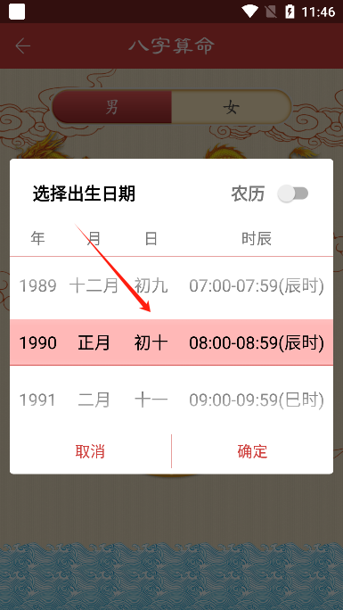 2、选择你的出生日期,注意区分农历