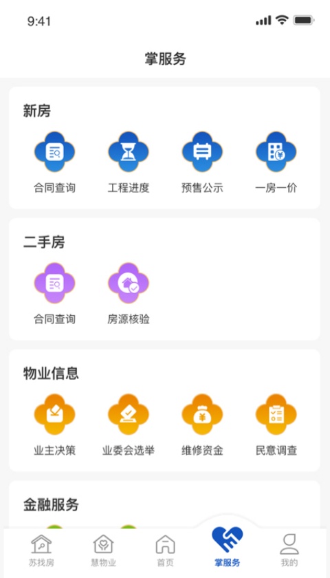 (三)掌服务:为居民提供掌上住房服务功能,包括:住房金融服务、政策法规、在线课堂、案例介绍、信息查询、智能客服以及统一客服热线等服务。