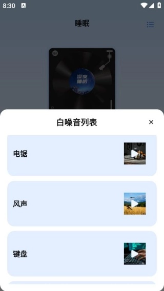 3、白噪音列表里的音频任意选择,可以根据自己喜好去播放。