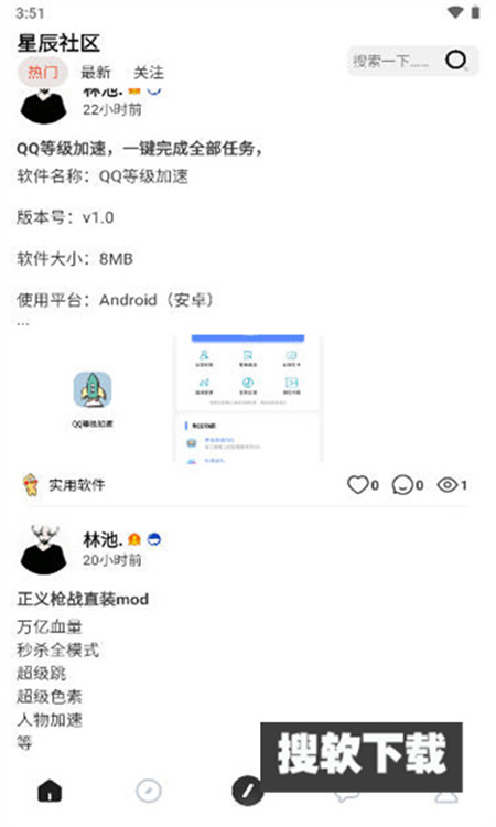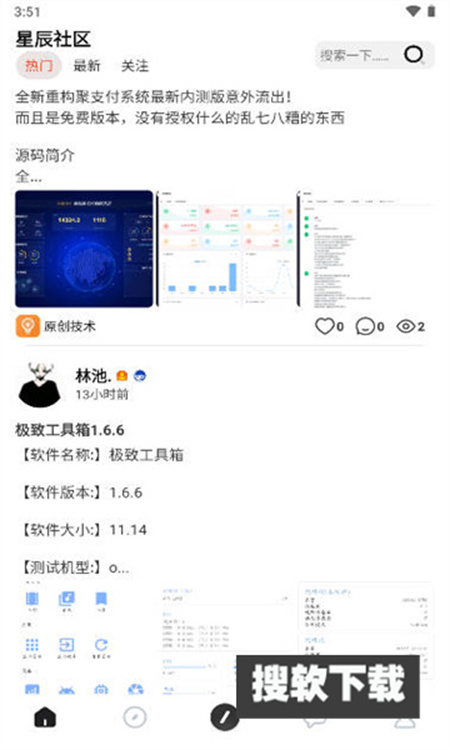 2、星辰社区首页设有优质软件推荐板块,内容清晰直观,让用户轻松获取所需,省心又省力。