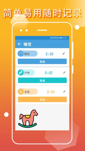 宝宝生活成长记能够对宝宝成长过程中的各类数据进行总览呈现与分类展示,便于父母随时查看和分析这些数据。其中睡眠记录功能支持计时记录宝宝睡眠状态,也可以分次记录;同时还能设置闹钟提醒,助力父母更科学地管理宝宝的睡眠时间。