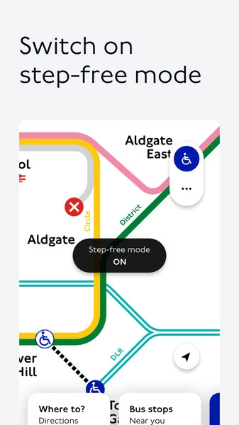 找到符合您需求的旅行方案,包括无障碍的无台阶行程,以及可避开楼梯或自动扶梯的路线。行程规划会依据车站的可达性状态自动调整,助力您避开出行中断的情况。此外,TfL Go还支持TalkBack功能与多种文本大小设置,让不同需求的用户都能更便捷地使用。