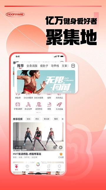 现在用户们可以看到超级简约的界面,系统会根据每个人的身体状况定制专属课程,还会推荐健康饮食方案,搭配运动效果更佳。在线直播课程让大家体验专业训练,助力塑造更健康的身体和优美的身姿。平台提供的健康运动信息非常全面,不同专业领域的课程内容各有特色,力求把最好的授课服务推荐给你,希望你能健身成功。这款应用十分好用,快来试试月野兔运动吧!