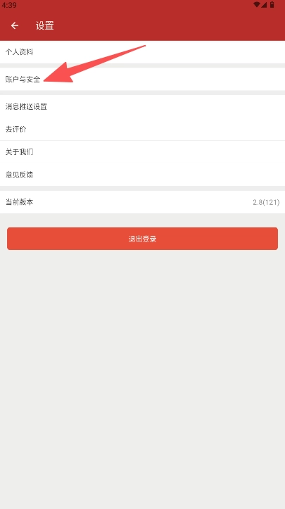 2、在设置页面找到并点击“账户与安全”选项,进入该功能。