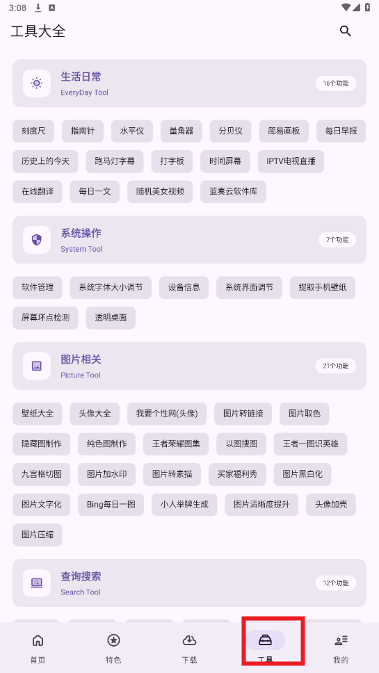 8.工具大全,为用户提供了非常多生活实用,系统操作,图片相关的小工具,点击即可在线使用
