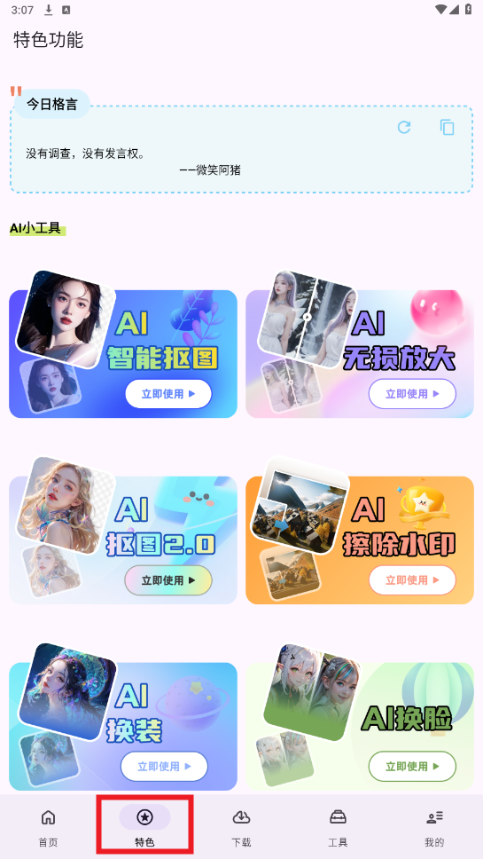 6.特色功能为用户提供了ai抠图,ai无损放大等超多修图功能