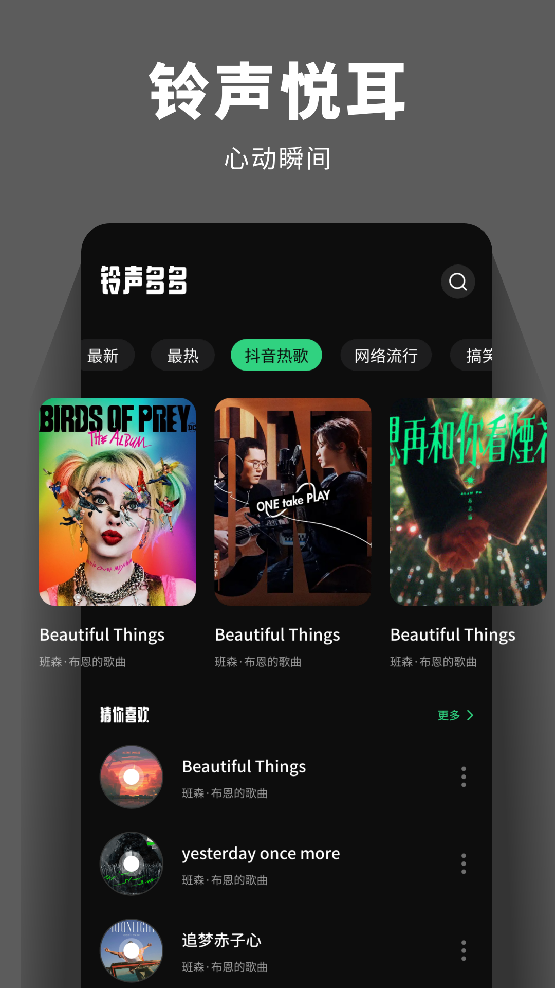 收集了当下热门的音乐和短视频音频,紧跟时代潮流,确保你的铃声库永远充满新鲜感,不再落伍。