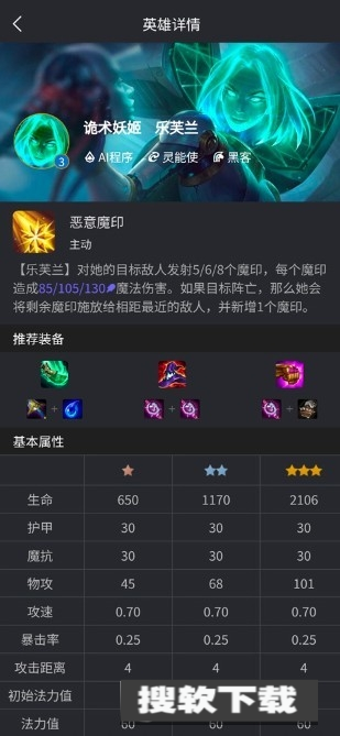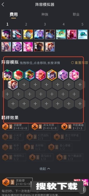 5、点击英雄头像,就能查看其详细属性、技能介绍以及羁绊效果,便于更深入地了解角色特点。