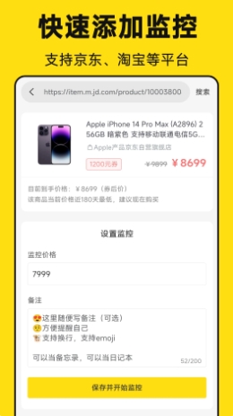 设置好价格预警,就不会错过优惠商品;开启时间推送功能,能及时查看商品降价信息;同时提供货物回收引擎,可有效帮助用户找到想要购买的货物。
