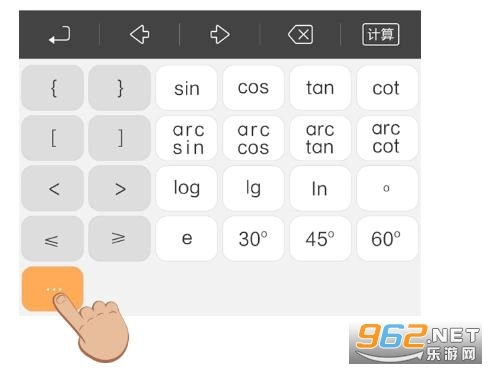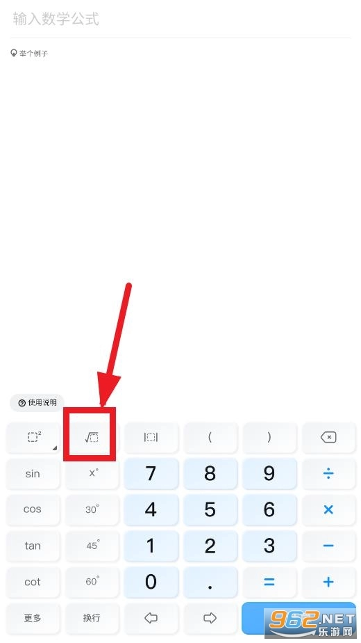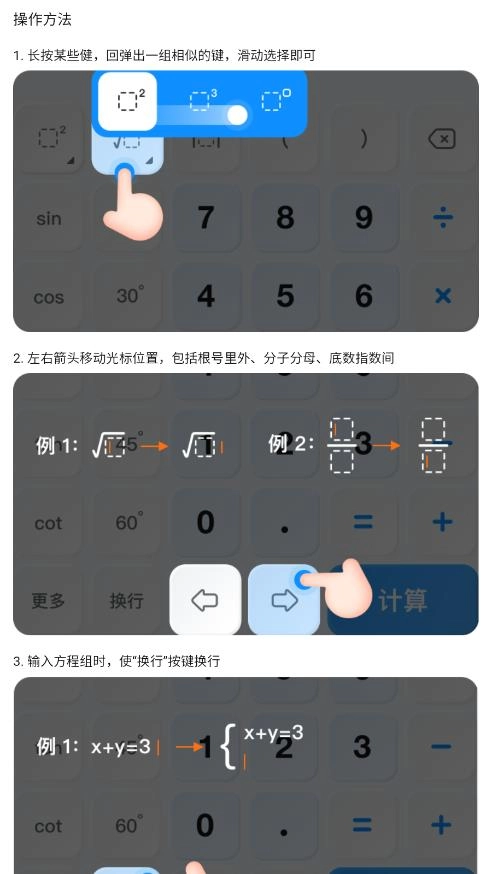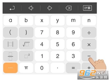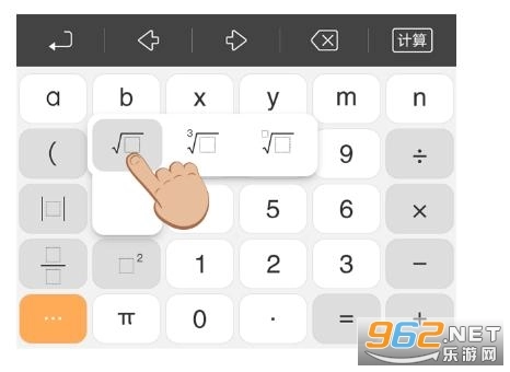 左右箭头可移动光标位置,无论是根号内部与外部、分子与分母之间,还是底数与指数之间都能覆盖。