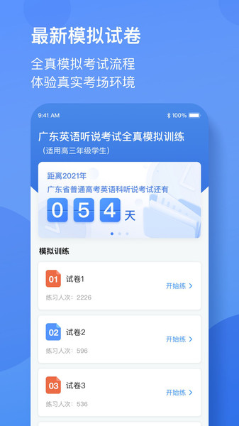 广东英语听说是一款专为广东高考生设计的英语听说学习工具,不仅提供专业的英语听说教学视频以助力提升英语能力,还配备考前样题、全真练习等多样化考题训练,帮助学生增强心理抗压能力,使其在考试时能从容应对,不再紧张。