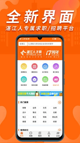 湛江人才网是湛江市伯乐人力资源服务有限公司旗下的求职招聘网络平台,同时也是一款全职招聘软件。该平台自2005年成立以来,在多年的运营过程中,持续依据用户的需求与使用习惯对功能进行优化。凭借着优质的服务和良好的口碑,湛江人才网获得了社会各界的广泛支持与认可。用户能够根据自身的兴趣和能力进行筛选,从而找到最契合自己的工作机会。此外,湛江人才网还具备简历制作与修改的功能,助力用户更好地展现自身的优势与特长。
