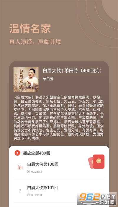 这是一款为有声阅读爱好者量身打造的在线听书平台,精心提供丰富多样的有声内容。我们为用户准备了有声小说、儿童故事、相声小品、广播剧、评书大全、幽默笑话、脱口秀、FM电台以及睡前故事等多种类别,支持在线收听与离线下载,满足您随时随地享受有声阅读的需求。