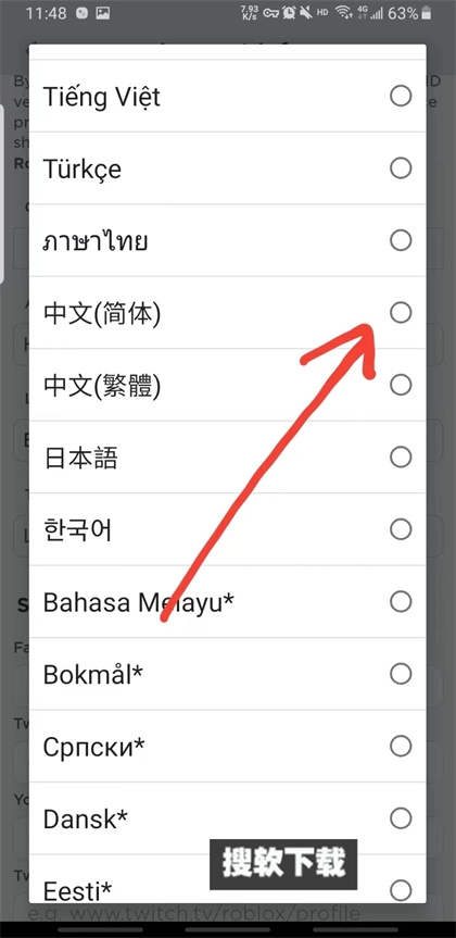 5.打开语言设置界面,向下滚动找到简体中文选项,点击进行更改