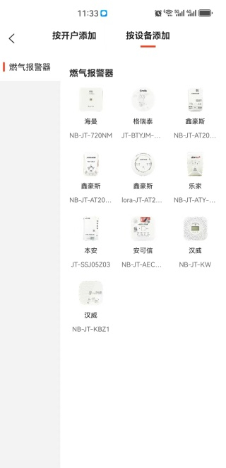 3、来到软件按设备添加页面选择需要添加的智能设备。
