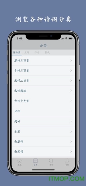 当然,诗集也是不可或缺的。在分类页面,能够浏览诗经、唐诗三百首、宋词三百首等诸多诗集。除此之外,还可以依据朝代进行查看,也能按照作者来查看。