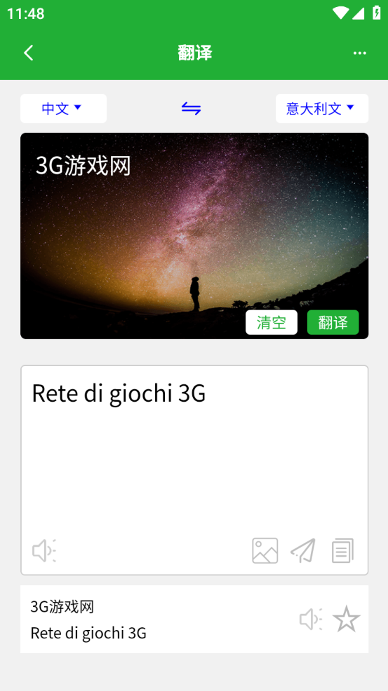 2、翻译结果能够以语音形式播放,借助这一功能可以学习意大利语的发音。