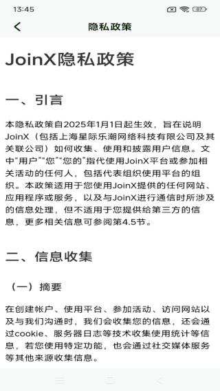 JoinX软件是一款充满趣味的手机聊天互动平台,能够轻松满足各类用户在线社交互动的需求。作为一款功能全面且高效的社交互动工具,它支持24小时全天候顺畅沟通,还打造了多种趣味社交玩法,是优质高效的手机脱单互动平台,拥有丰富的互动模式,堪称一站式线上社交解决方案。