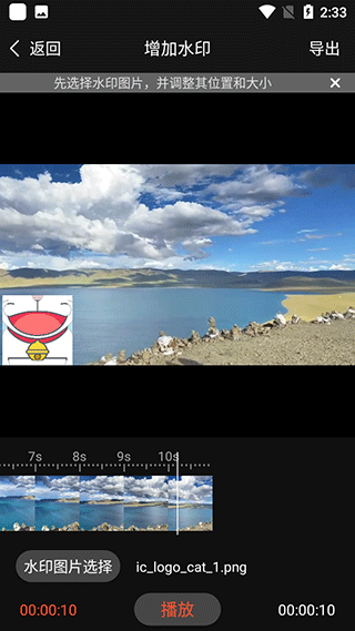 5、修改水印图片大小以及合适的放置位置,点击右上角导出就可以啦
