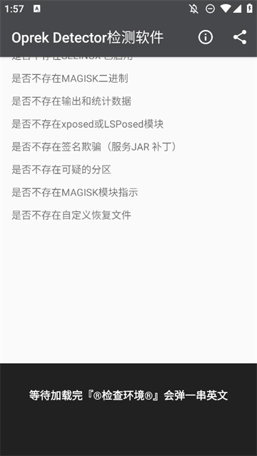 Oprek Detector检测软件【02-26更新】是一款专业的安卓设备root检测工具,可以快速检测安卓系统的环境,然后了解你的手机环境是否处于安全的情况。oprekdetector检测软件免费版主要用于检测和分析特定数据,帮助用户及时了解手机健康状况,检测手机的各种硬件信息、获取手机参数、进行后台查杀等,预防潜在问题,延长手机使用寿命。