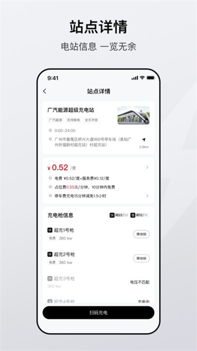 充电导航:支持实时呈现充电站地图并提供导航服务,能帮助用户快速定位周边的充电站。